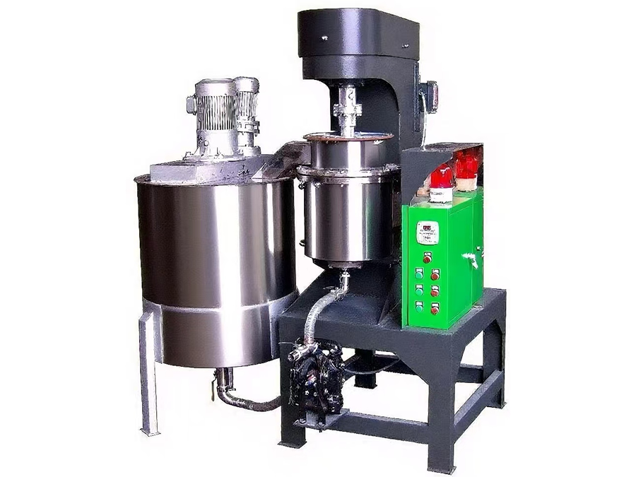 AXH系列循环式搅拌球磨机是一种将搅拌磨机和大容量的预混和搅拌桶相结合的机型,利用泵高速循环达到快速的研磨效果及较窄的粒径分布.快速循环的物料通过搅拌球磨室内激烈的研磨介质层,这种现象有利于得到较窄的粒径分布,允许较小的微粒迅速通过,而相对较粗的微粒则要滞留较长的时间,对粗粒有优先破碎效果. 循环式搅拌磨通常用于物料尺寸达到微米级,质量要求高,难于研磨和分散的物料研磨。